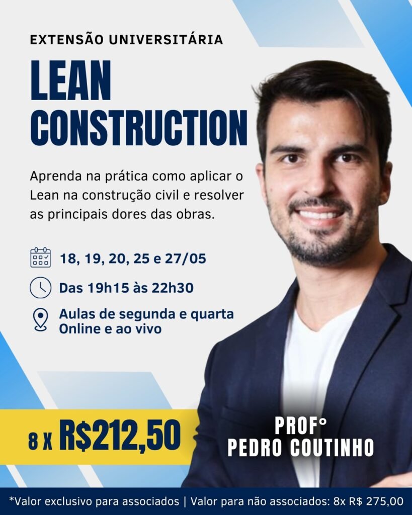 • Fundamentos do Lean na Construção e sua aplicação prática em obras reais;